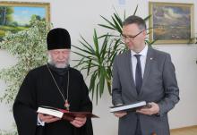 “Чалавеку неабходна выконваць законы не толькі фізічныя, але і духоўныя”, – такую думку выказаў старшыня Сінадальнага аддзела па супрацоўніцтве са свецкімі ўстановамі адукацыі протаіерэй Фёдар Поўны ў адкрытым дыялогу з калектывам ГДУ імя Францыска Скарыны.