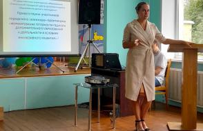 На семинаре была проведена презентация социального проекта «Обычные люди» по работе с детьми-инвалидами с особенностями психофизического развития, который представили руководитель проекта Вероника Николаевна Рожкова, заведующий отделом туризма и краеведения ГУО «Гомельский городской центр дополнительного образования детей и молодежи», и Лариса Борисовна Брагинская, педагог дополнительного образования данного учреждения.