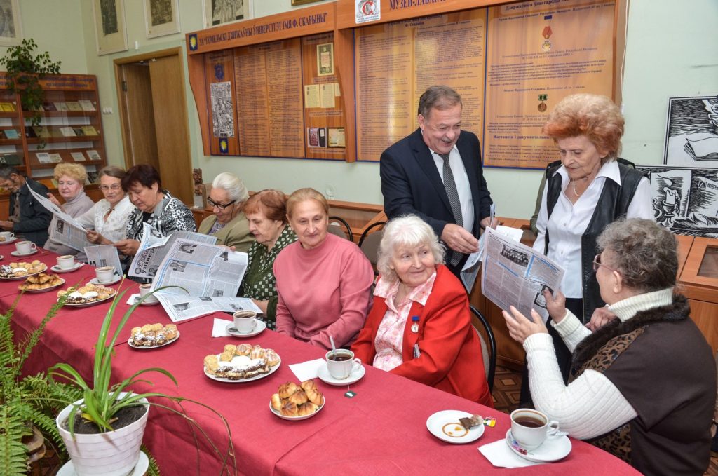 Сегодня в музее-лаборатории Ф. Скорины поздравления с приближающимися праздниками – Днем учителя и Днем пожилых людей – принимали ветераны педагогического труда и те, кто многие годы своей жизни посвятил работе в ГГУ. На встречу с ними поспешили члены ректората, общественных и профсоюзных организаций, студенты.