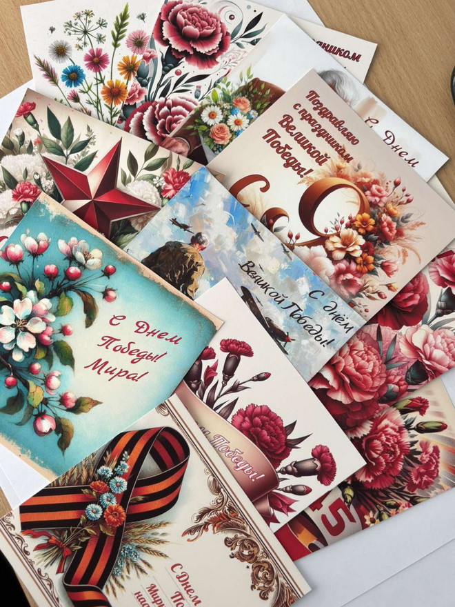 В преддверии празднования 80-летия Победы в Великой Отечественной войне была проведена акция по изготовлению самодельных открыток для ветеранов и жителей города. Праздничный набор открыток подготовили студенты волонтерского отряда «Код добра» факультета физики и ИТ.