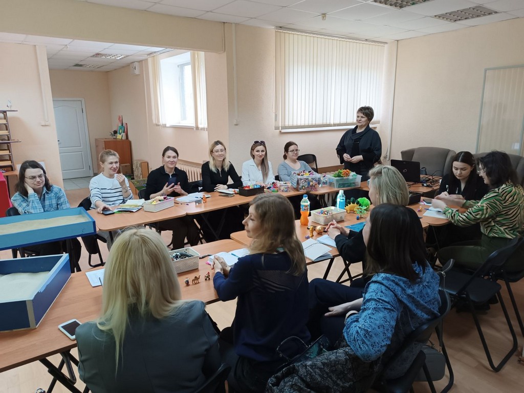 Опытом практической реализации и методическими принципами коррекционно-развивающей работы с детьми дошкольного возраста с применением песка делилась спикер встречи – доцент кафедры социальной и педагогической психологии Наталья Новак.