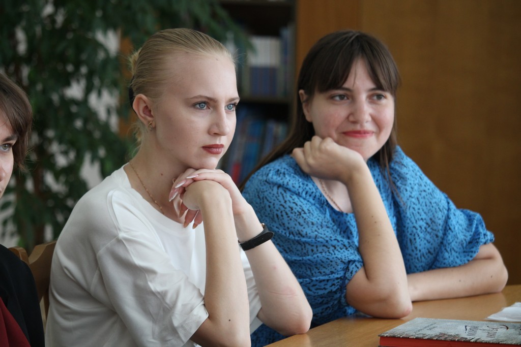 Сёння адбылася сустрэча студэнтаў і выкладчыка з Варонежскага дзяржаўнага ўніверсітэта з рэктарам ГДУ імя Францыска Скарыны Сяргеем Хахомавым. Філолагі, якія вывучаюць беларускую мову як адну са славянскіх, прыехалі ў Гомель для праходжання дыялекталагічнай практыкі ў адпаведнасці з вучэбным планам і Дамовай аб супрацоўніцтве паміж універсітэтамі.