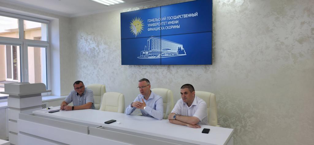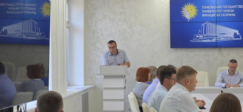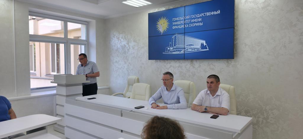 02 августа 2025 года в Гомельском государственном университете имени Франциска Скорины состоялось заключительное открытое заседание приемной комиссии, для рассмотрения окончательных вопросов по зачислению абитуриентов на места для получения высшего образования дневной, дистанционной и заочной форм обучения на платной основе. После вступительной речи ректора университета Сергея Хахомова ответственный секретарь приемной комиссии озвучил проходные баллы на все специальности платной формы обучения.
