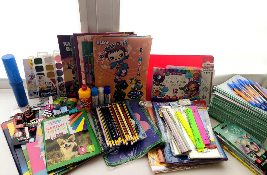 Принимаются любые школьные принадлежности: ручки, карандаши, тетради, учебники, альбомы, пеналы, краски, фломастеры, рюкзаки и многое другое.