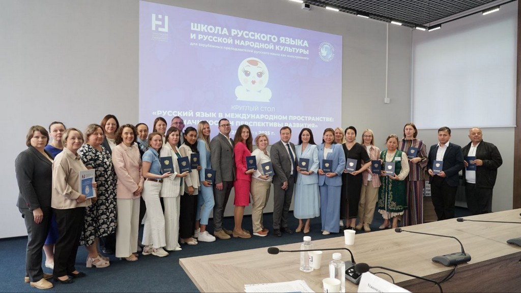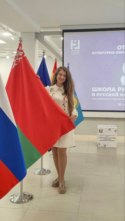 На церемонии закрытия учителя и преподаватели приняли участие в круглом столе «Русский язык в международном пространстве: значимость и перспективы развития» с выступлением заместителя руководителя Россотруднтчества Павла Шевцова. Ангелина Александровна выступила с докладом «Особенности преподавания РКИ в университетах Республики Беларусь».