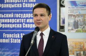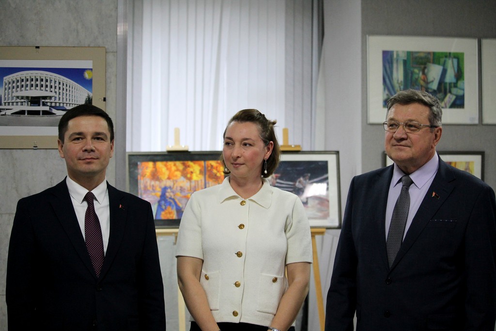 С приветственным словом к посетителям вернисажа обратился проректор по идеологической и воспитательной работе Дмитрий Ходанович. В своей речи Дмитрий Александрович подчеркнул важность сотрудничества университета с художественной школой, поздравил коллектив с юбилеем, а также пожелал новых творческих успехов и вдохновения. С открытием выставки собравшихся поздравил и директор ГУО «Детская художественная школа искусств г. Гомеля» Владимир Осипов.