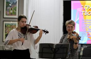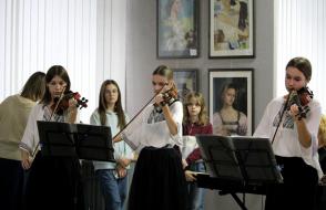 Началом арт-события стало выступление старшей группы образцового ансамбля скрипачей «Шутка» ГУО «Детская школа искусств г. Гомеля» (руководитель – Людмила Кнопач, концертмейстер – Елена Мягкова).