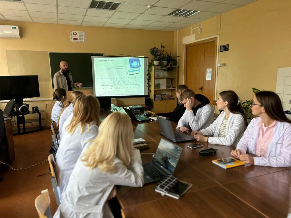 Студенты и магистранты кафедры получили возможность узнать о новейших разработках и методиках молекулярно-генетических исследований, современных подходах к биологическим изысканиям, а также познакомились с конкретными алгоритмами работы с нуклеотидными последовательностями.