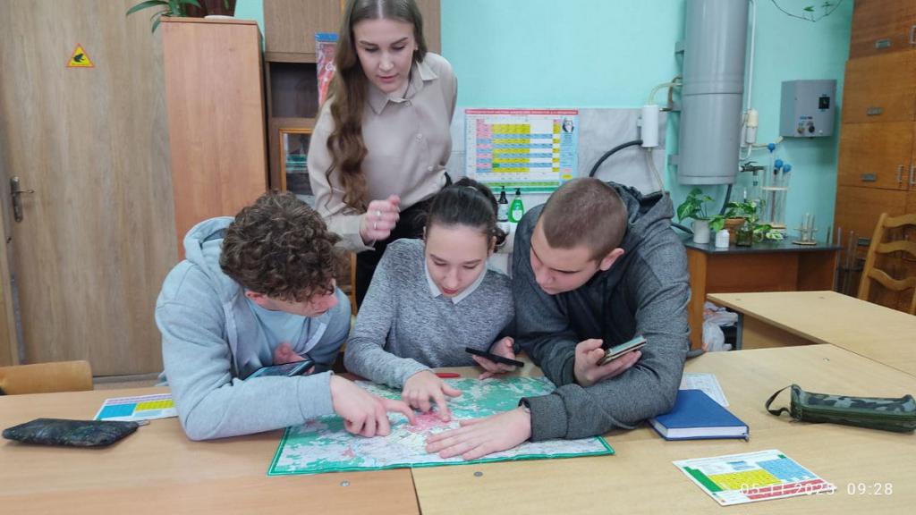 Еще одна профориентационная встреча прошла в г. Светлогорске. Декан геолого-географического факультета С.В. Андрушко и заведующей кафедрой геологии и географии А.П. Гусев посетили в период каникул выпускников школ города, которые собрались в ГУО « Центр творчества детей и молодежи «Ювента». Учащимся рассказали об особенностях вступительных испытаний на факультет, специальностях и местах трудоустройства после окончания обучения. Представители факультета посетили ОПИ «Геологический» и встретились с командой юных геологов «Агат», геологический музей центра.