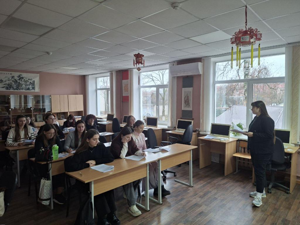Виолетта Белодед, старший преподаватель кафедры русского, общего и славянского языкознания ГГУ, провела мастер-класс по изучению возможности употребления комплемента в китайском языке.