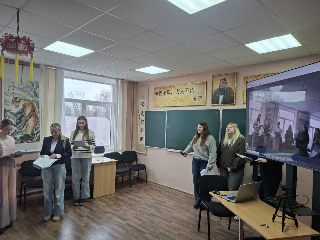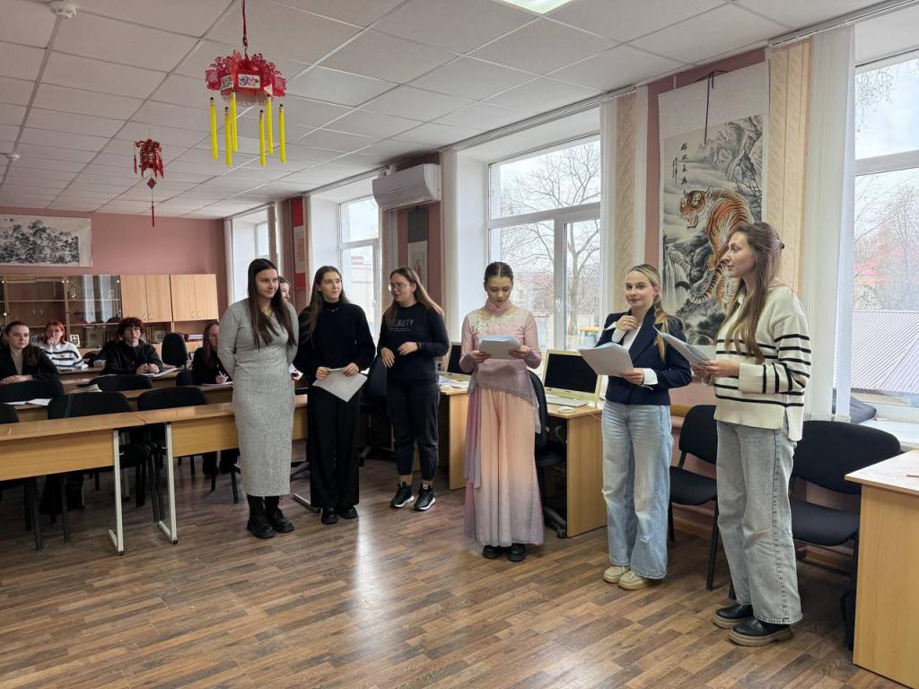 В мероприятии принимали участие студенты 2 и 4 курса специальности «Русский язык и литература. Иностранный язык (китайский)». Ребята продемонстрировали свои языковые познания, выполняя различные задания на развитие устной и письменной речи, выступая в роли актеров в театрализованной постановке, читая произведения китайской поэзии.