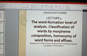 GSU 外语学院以 F. Skorina 命名的学生听取了外语与语音传播系副教授 Olga Potekhina 博士的讲座——“语音形成的细节小学适龄儿童的技能”,Elena Bushueva,艺术。 外语与言语交际系讲师——《构词层次分析》。 根据词素构成、词形和词缀的同音异义词分类”、“词的产生。 构词法。