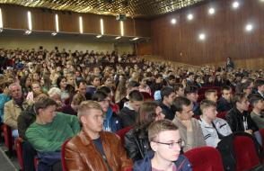 2 и 3 октября в актовом зале ГГУ имени Ф Скорины состоялись информационно-профилактические встречи с первокурсниками всех факультетов ГГУ имени Ф. Скорины. На мероприятиях присутствовал проректор по воспитательной работе Никитюк Юрий Валерьевич, председатель профсоюза Азявчиков Сергей Олегович, заместитель председателя профсоюза студентов Климова Татьяна Владимировна, инспектор инспекции по делам несовершеннолетних администрации Центрального района г. Гомеля, старший лейтенант милиции Карасева Ирина Владимировна, психолог психологического отделения учреждения «Гомельский областной наркологический диспансер» Сериков Алексей Вячеславович, инспектор инспекции по делам несовершеннолетних администрации Центрального района г.Гомеля, старший лейтенант милиции Судникович Веста Юрьевна, психолог психологического отделения учреждения «Гомельский областной наркологический диспансер»  Шелкович-Кураш Алёна Валентиновна.  В рамках встречи обсуждались вопросы, касающиеся профилактики правонарушений и зависимостей.