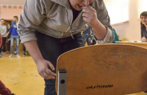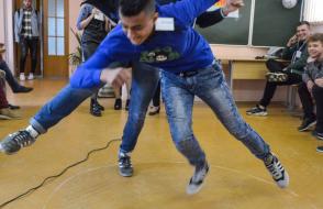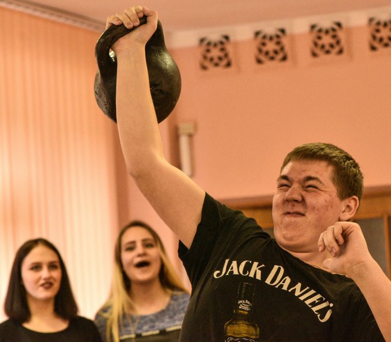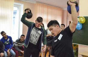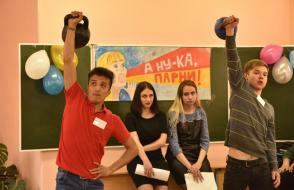 С нескрываемым азартом ребята ринулись в бой: поднимали гири, отжимались, надували шарики на время, чистили картошку, завязывали галстук, состязались в скорости выкладывания фразы признания в любви. Все участники проявили ловкость, сноровку, находчивость, предупредительность, вежливость, ум – словом, все качества, которые присущи настоящему мужчине.