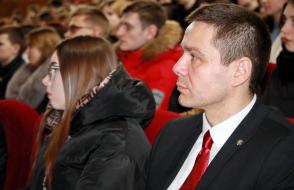 С приветственным словом выступил проректор по воспитательной работе Дмитрий Ходанович. Гости встречи – заместитель начальника управления по противодействию киберпреступности Вадим Борсук, старший инспектор по особым поручениям отдела идеологической работы Светлана Русак, заместитель начальника управления по борьбе с экономическими преступлениями Сергей Аксенчиков.