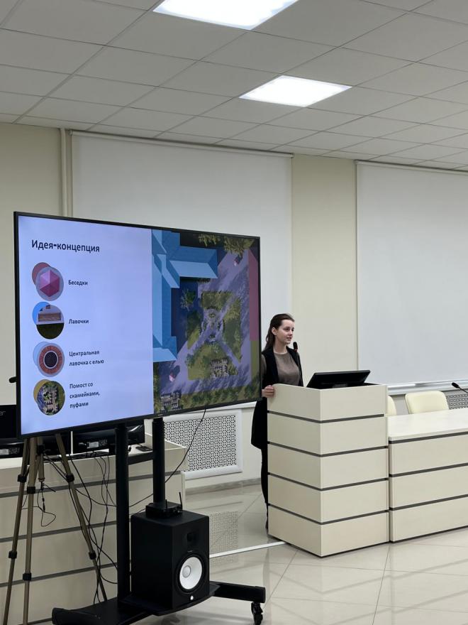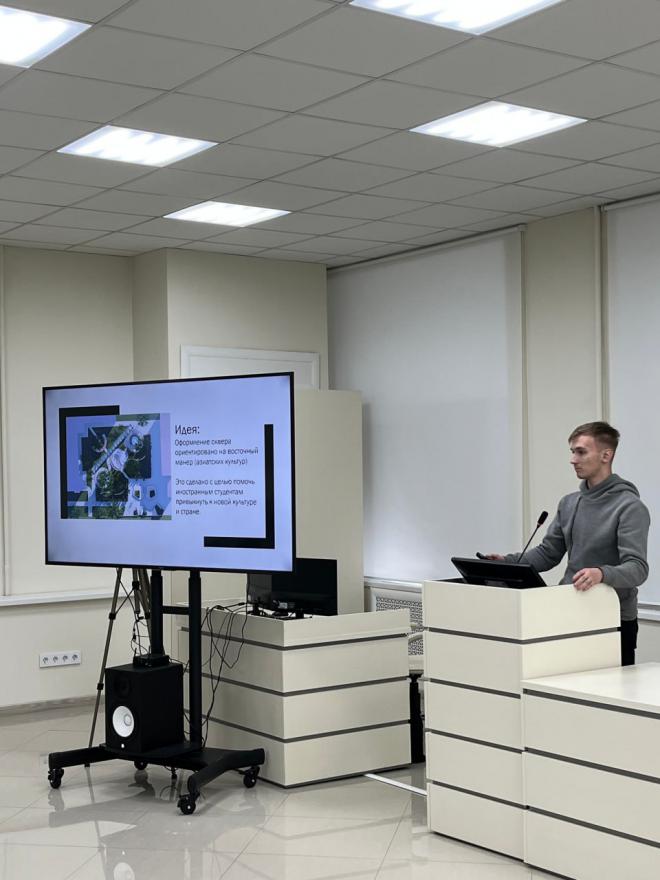 От участников требовалось подготовить архитектурный проект по благоустройству территории, расположенной между корпусами №2 и №3 университета.