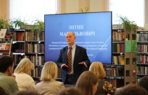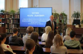 27 февраля прошла встреча студентов юридического факультета Гомельского государственного университета имени Ф. Скорины с заведующим кафедрой интеграционного права и прав человека Московского государственного института международных отношений (университет) Министерства иностранных дел Российской Федерации (МГИМО МИД России), доктором юридических наук, профессором Марком Энтиным.