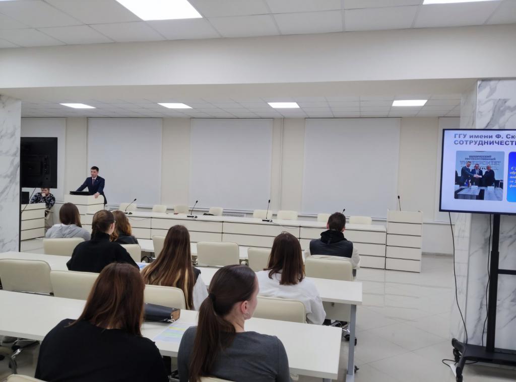 03 мая 2025 в стенах Гомельского государственного университета имени Франциска Скорины прошла профориентационная встреча с абитуриентами - победителями областных олимпиад по учебным предметам, школьниками и гимназистами, потенциальными обладателями медалей, а также выпускниками колледжей - обладателями красных дипломов.