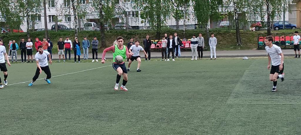 В преддверии праздника Великой Победы состоялся товарищеский матч по футболу между иностранными студентами факультета физической культуры и факультета физики и информационных технологий.