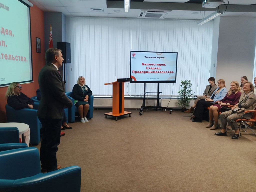 В качестве спикеров выступили начальник управления поддержки малого и среднего предпринимательства Департамента по предпринимательству Министерства экономики Республики Беларусь Анна Ивановна Ярук, главный специалист отдела корпоративного бизнеса Гомельского областного управления № 300 Юлия Александровна Шкуро, директор РУСП «Агентство развития и содействия инвестициям», к.э.н., доцент Андрей Павлович Бобович, а также директор компании-резидента технопарка «Коралл» ЧУП «Нейро 3D» Игорь Геннадьевич Борисов.