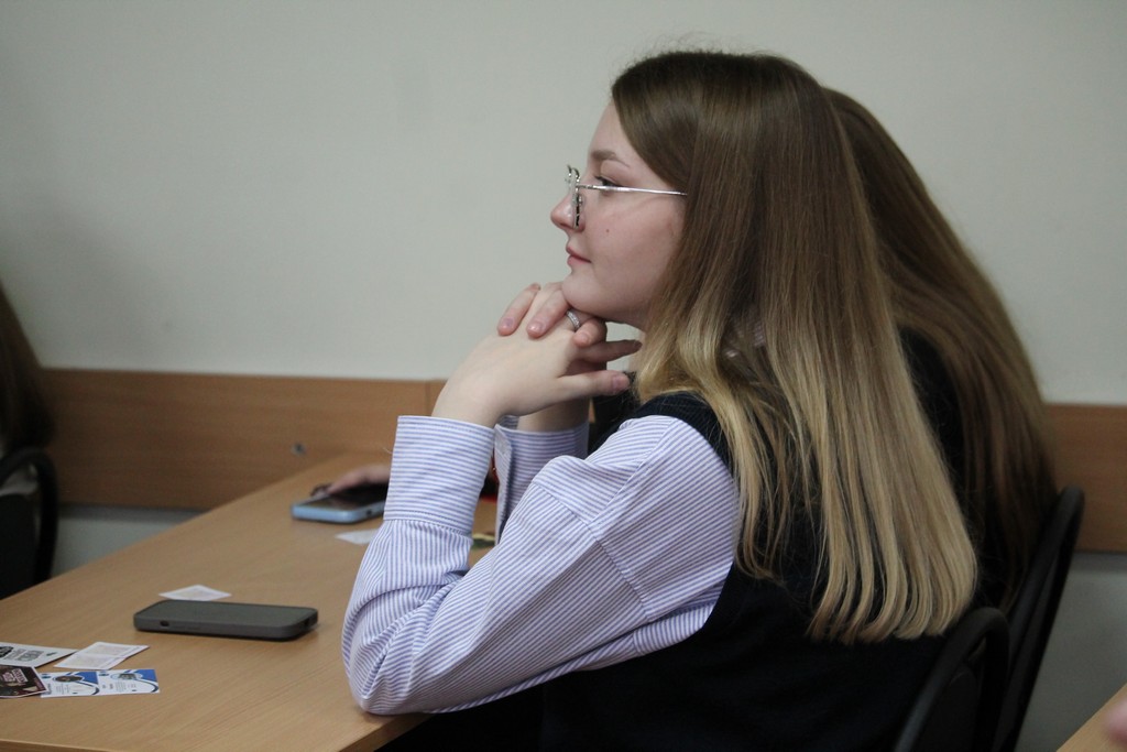 Людмила Владимировна поделилась опытом работы в качестве заместителя декана. «Я человек амбициозный, а амбициям нужен рост», – говорит Людмила Владимировна. Студенты и участники с удовольствием слушали и задавали спикеру вопросы.