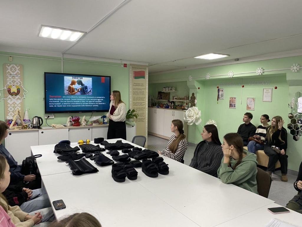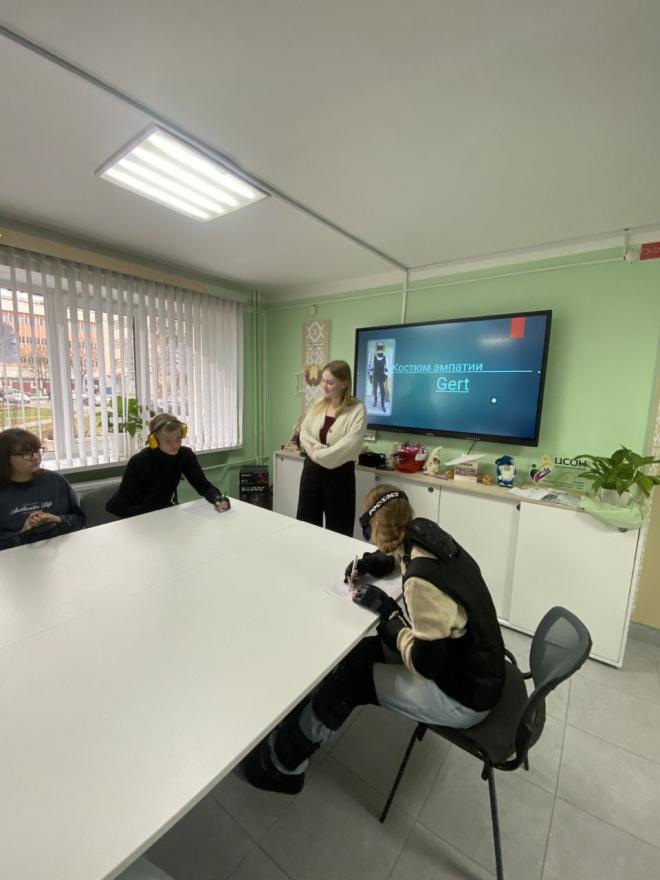 В отделении социальной реабилитации, абилитации ЦСОН Центрального района г.Гомеля проведено интерактивное занятие для студентов. Инновационный костюм эмпатии GERT помог будущим психологам глубже понять и прочувствовать особенности жизни людей с ограниченными возможностями.