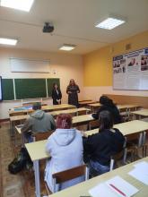 7 октября 2025 года на факультете математики и технологий программирования прошла встреча руководства Гомельского государственного машиностроительного колледжа со студентами 4 курса педагогических специальностей. Встречу провели заместитель директора колледжа по учебной работе Ольга Веретенникова и председатель цикловой комиссии программирования мобильных устройств Алена Завацкая.