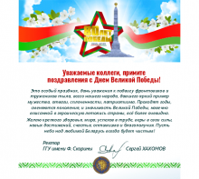 Традиционно 9 Мая представители ректората, общественных организаций, преподаватели и студенты ГГУ приняли участие в торжественном шествии, выставке "80 МИРНЫХ ЛЕТ" по случаю 80-й годовщины Великой Победы. Этот праздник является символом мужества, героизма и единства народа.
