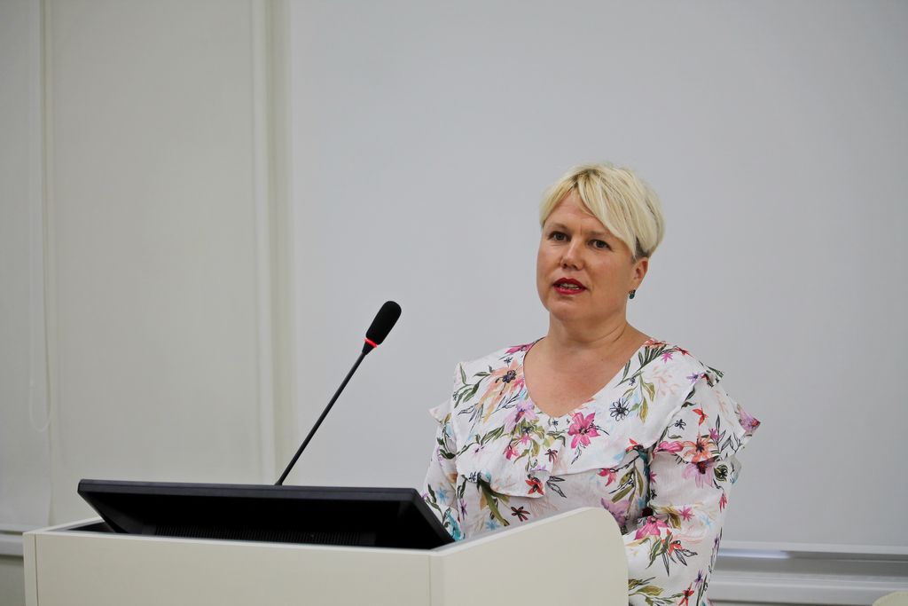 经济信息学、会计与商学系高级讲师Natalya Bartashevich、世界历史系副教授Elena Dubrovko、放射物理与电子学系副教授Alina Semchenko就我校教职工的国外实习情况做了报告。