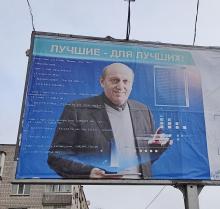 在戈梅利的一条街道上安装了一块广告牌,上面有米哈伊尔·多林斯基 (Mikhail Dolinsky) 的照片,他是技术科学候选人、F. Skorina 州立大学副教授。
