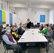 12月27日,在数学与编程技术学院,计算数学系主任Dmitry Kuzmenkov、EPAM Systems戈梅利分会代表Elena Gridina会见了物理和数学专业十年级和十一年级的学生。戈梅利市学园。