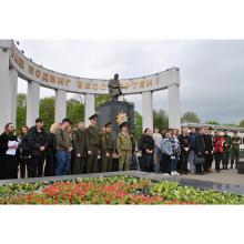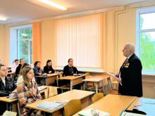 在伟大卫国战争胜利 78 周年前夕,在爱国主义教育计划的框架下,为了在未来的教师中形成公民爱国文化,在生物学院与未成年法西斯主义囚犯尼古拉·帕夫洛维奇·梅若欣的参与。