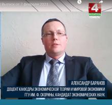 2 月 7 日,经济理论与世界经济系副教授亚历山大·巴拉诺夫参加了“白俄罗斯 4 戈梅利”电视频道播出的下一期电视节目“意见”。 本期主题是 2023 年白俄罗斯的经济形势。