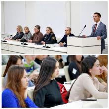 传统上,教育事务副校长 Dmitry Khodanovich 致欢迎辞。国际关系部负责人亚历山大·格拉霍茨基、戈梅利地区执行委员会内务局公民和移民部特别任务高级检查员、警察中校奥克萨娜·布伦科娃、公民部负责人出席了会议。戈梅利中央区行政管理部内政部移民部,警察少校 Elena Ermakova,戈梅利 Zheleznodorozhny 区行政管理部公民事务部和移民部负责人,警察少校Elena Ravkovskaya,戈梅利市卫生和流行病学中心艾滋病预防部门的助理流行病学家 Natalya Vychikova,以及各学院副院长、研究小组的策展人。