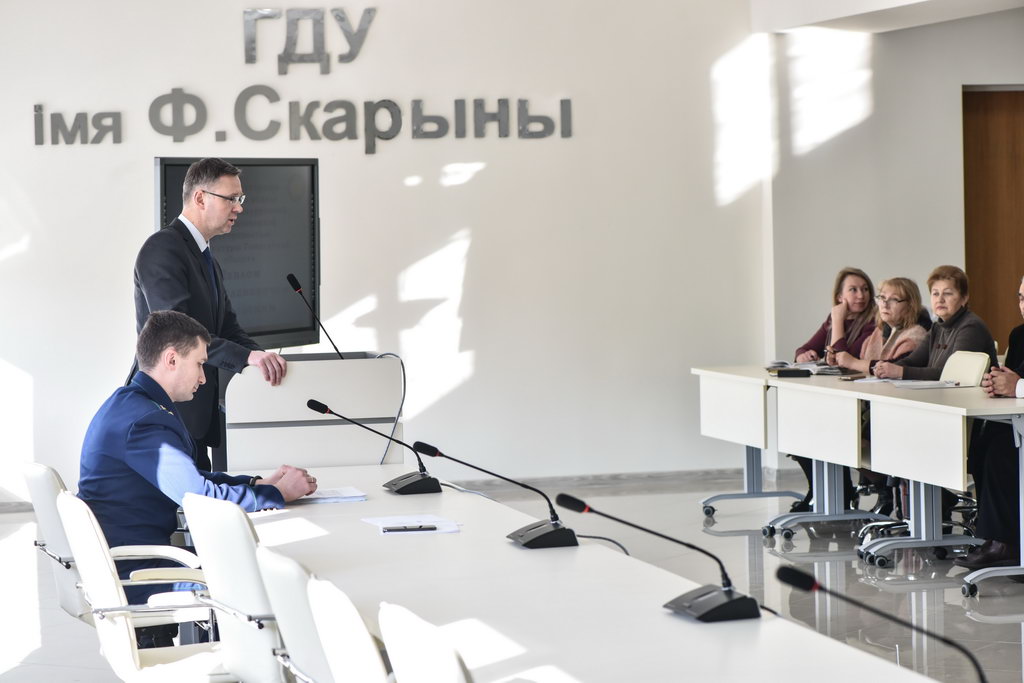 8 лютага ў ГДУ імя Ф. Скарыны адбылася сустрэча працоўнага калектыву ўніверсітэта са старэйшым пракурорам аддзела па барацьбе з карупцыяй і арганізаванай злачыннасцю пракуратуры Гомельскай вобласці Паўлам Станіслававічам Цішкоўскім.