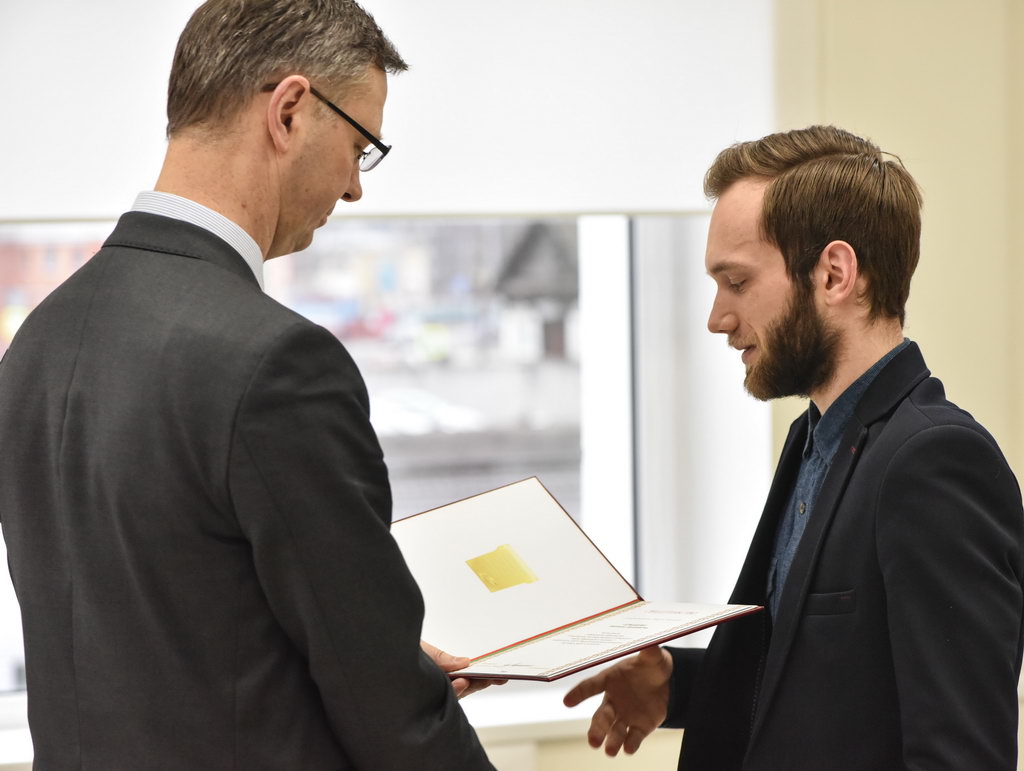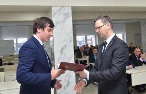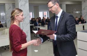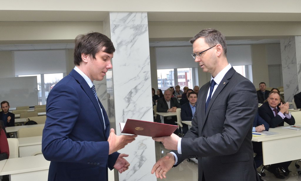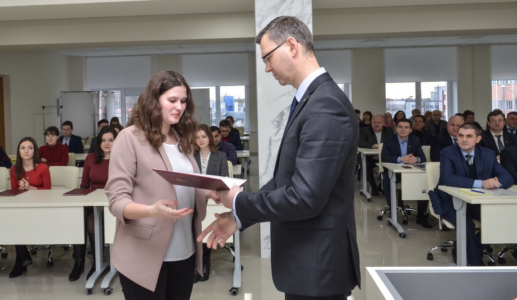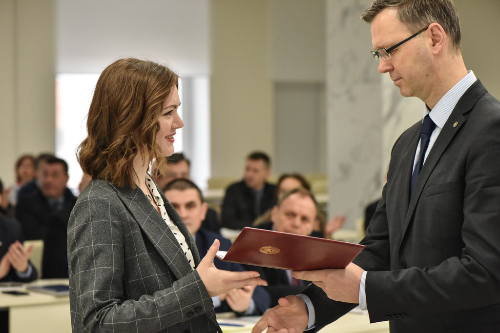 Урачыстая цырымонія ўзнагароджання адкрыла ранішняе пасяджэнне рэктарата. Уручаючы заслужаныя ўзнагароды, рэктар універсітэта Сяргей Хахомаў падкрэсліў, што гэтыя маладыя людзі на працягу вучобы ва універсітэце неаднаразова актыўна праяўлялі сябе ў навуковай і грамадскай дзейнасці, што і пацвярджаецца атрыманнем гэтак высокіх узнагарод.