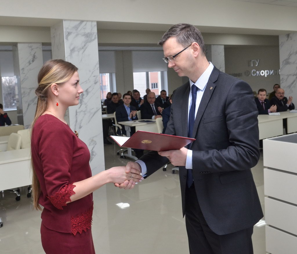 Больш за дваццаць прадстаўнікоў таленавітай моладзі ГДУ імя Ф. Скарыны атрымалі Сведчанні спецыяльнага фонду Прэзідэнта Рэспублікі Беларусь па сацыяльнай падтрымцы адораных навучэнцаў і студэнтаў.