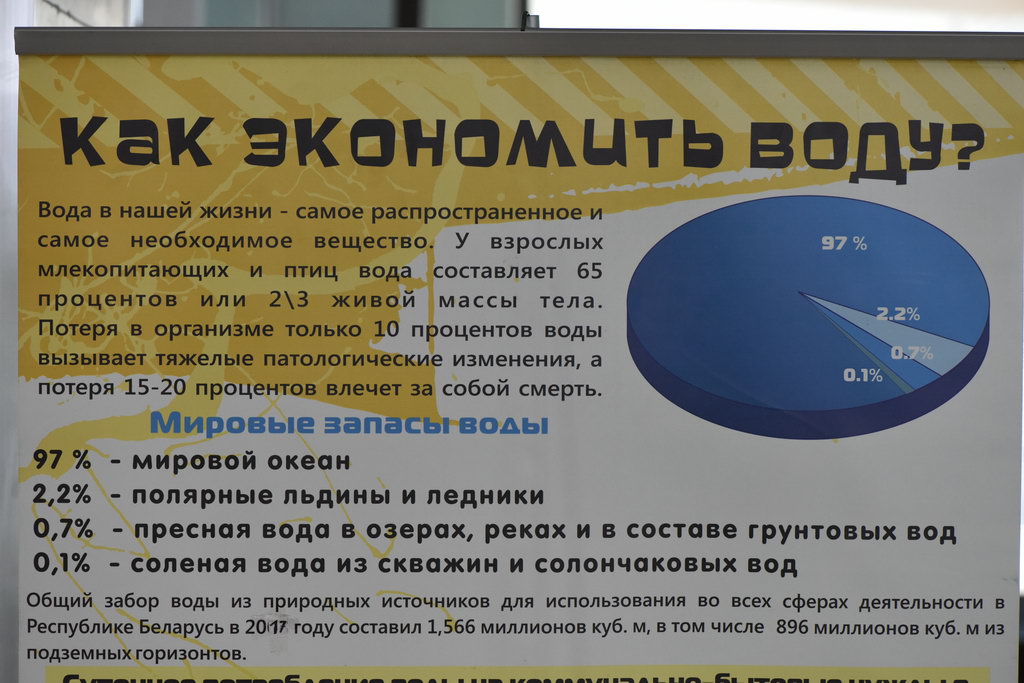 Як распавяла загадчыца кафедры экалогіі Аксана Кавалёва, удзельнікаў акцыі цікавіла, якую ваду мы п'ём, ня шкодная яна для здароўя, ці можна ачысціць ваду ў хатніх умовах. Адказы на гэтыя пытанні даў майстар-клас па вызначэнню канцэнтрацыі забруджвальных рэчываў у пробах пітной вады, які правёў дырэктар абласнога грамадскага аб'яднання "Гомельская асацыяцыя дзяцей і моладзі" Уладзімір Коўзелеў: