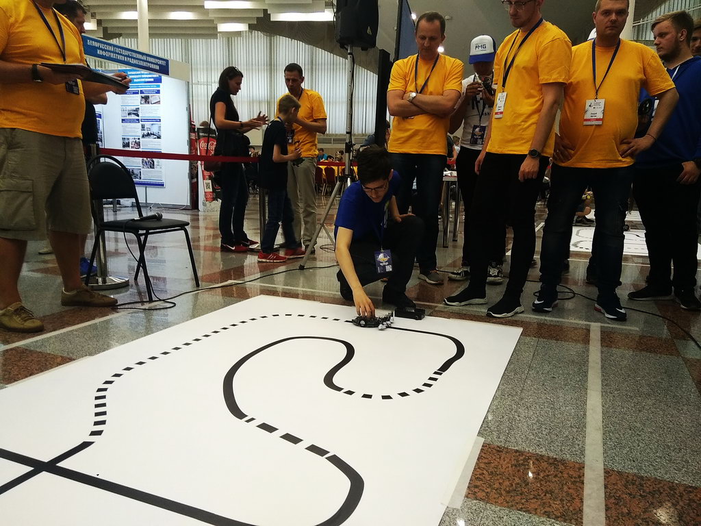 Хлопцы ў складзе каманд ўдзельнічалі ў конкурсе «Прытрымліванне па лініі. Профі ». Сканструяваныя імі Lego-робаты і машыны на робоплатформе спаборнічалі ў праходжанні ўчастка трасы з паваротамі і скрыжаваннямі за максімальна кароткі час. З 27 каманд толькі 15 паспяхова прайшлі заезд, пры гэтым робаты нашых студэнтаў паказалі выдатны хуткасны вынік і ўвайшлі ў дзесятку лепшых!
