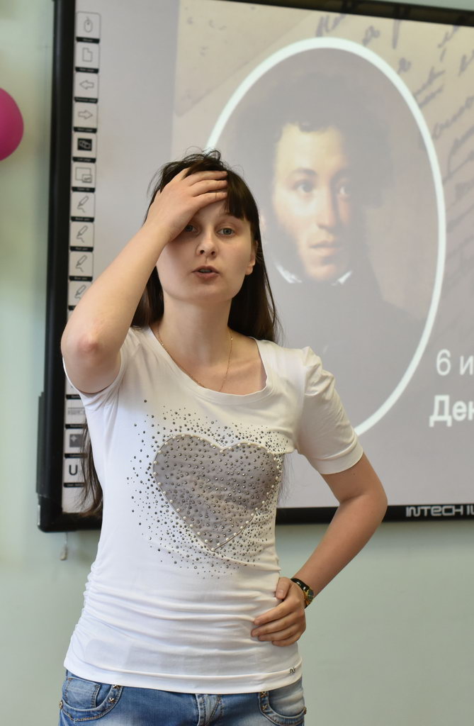 Ясная, па-гадоваму сонечнае надвор'е за акном як нельга лепш перадала цёплую атмасферу, якая панавала ў аўдыторыі. Са словам пра Пушкіна выступілі настаўнік-метадыст рускай мовы і літаратуры гімназіі № 14 Жанна Фёдараўна Жадзейка, выкладчыкі кафедры рускай, агульнага і славянскага мовазнаўства.