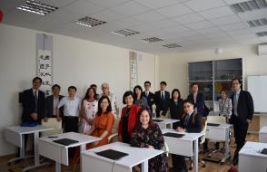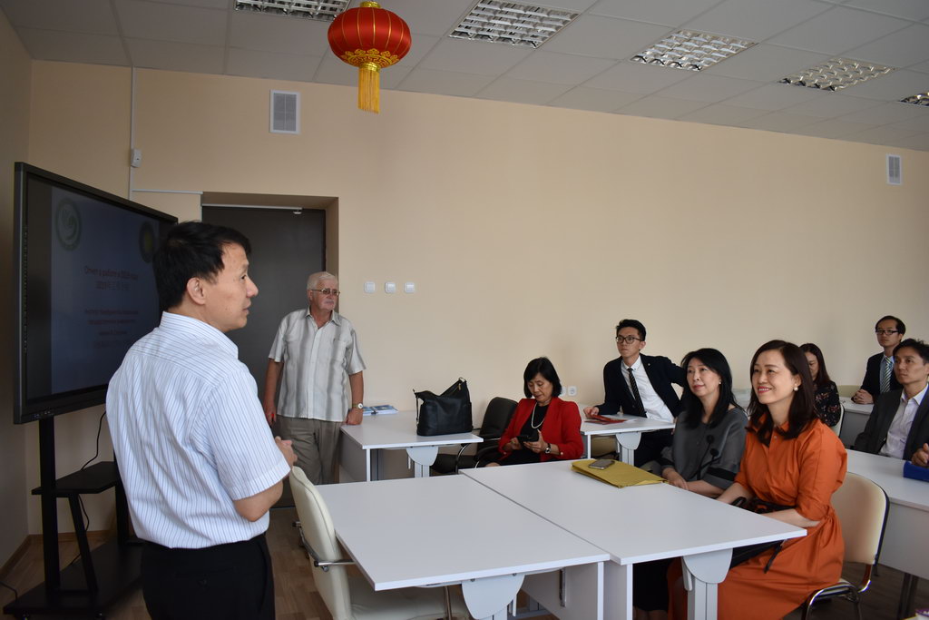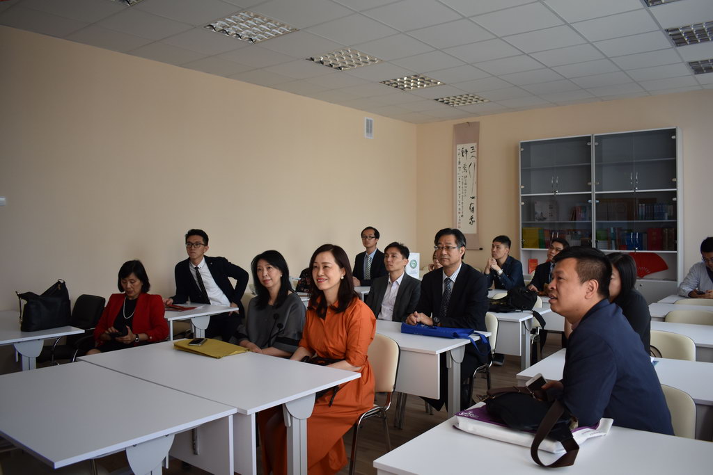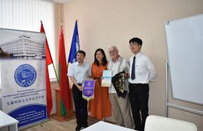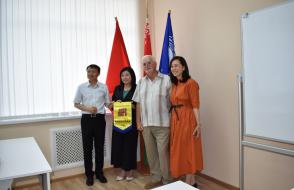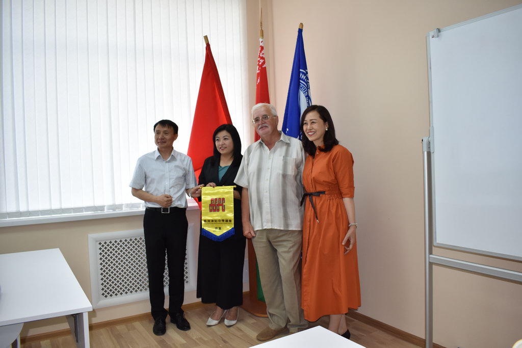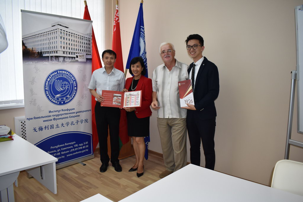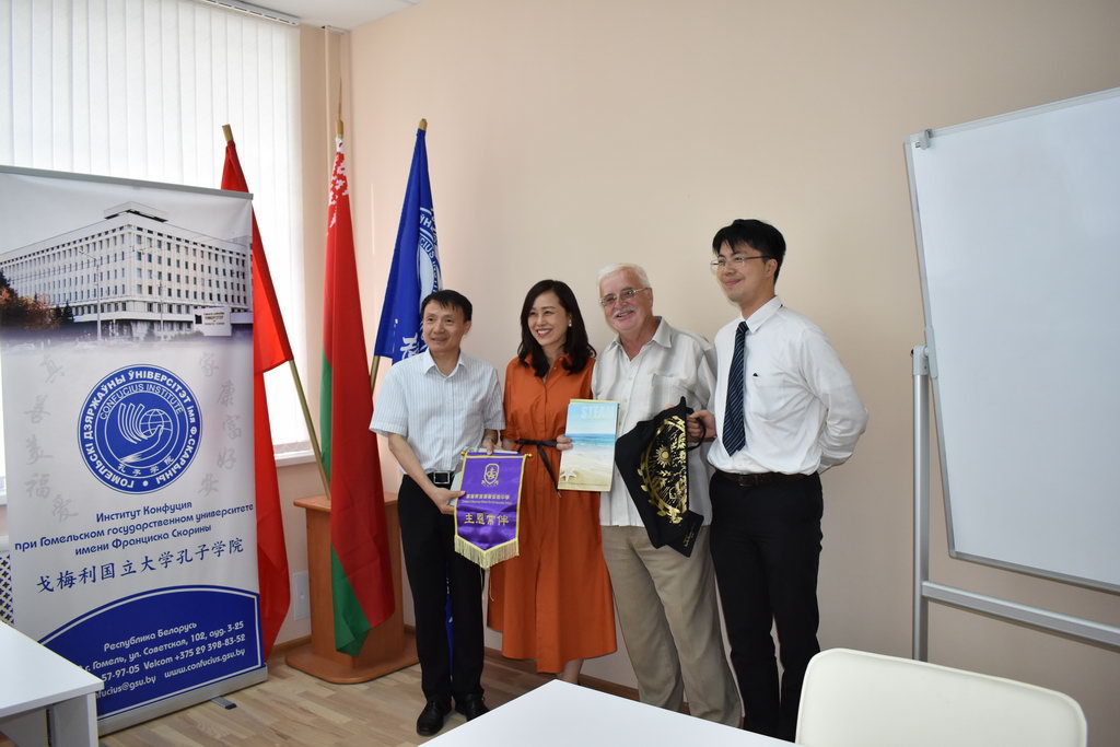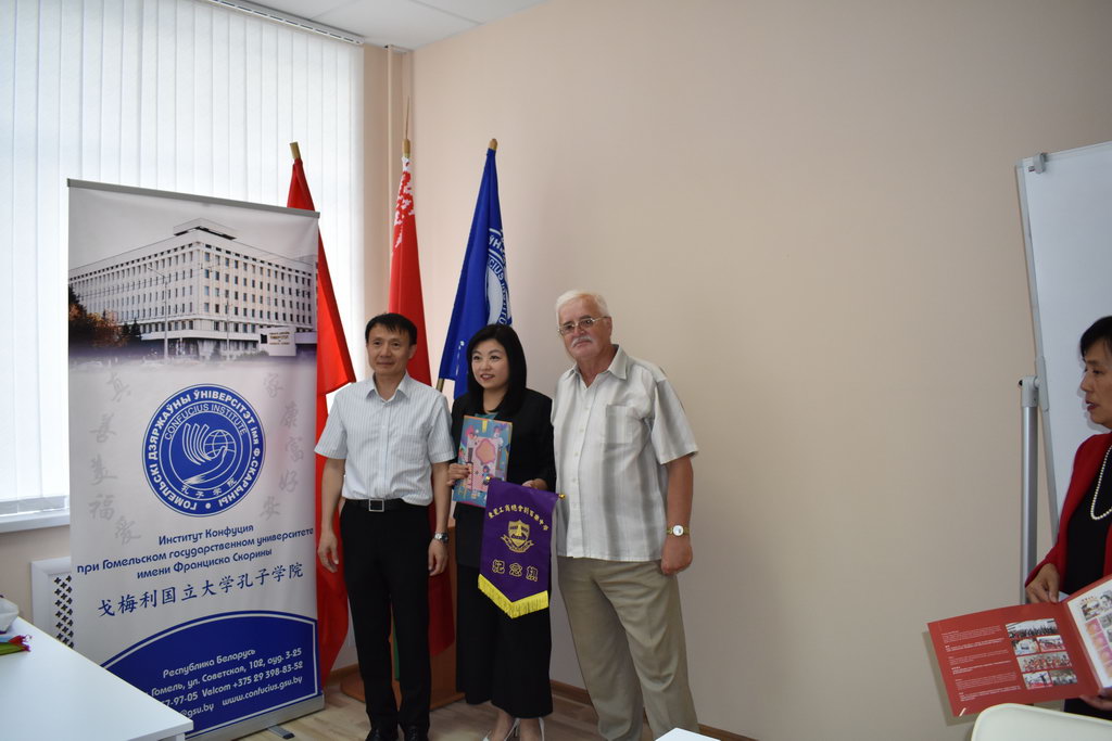 Члены дэлегацыі з цікавасцю выслухалі аповяд дырэктара Інстытута Канфуцыя з кітайскага боку г-на Ван Лэя аб дзейнасці Інстытута, аб канкрэтных мерапрыемствах па папулярызацыі кітайскай мовы і культура Кітая, аб вывучэнні кітайскай мовы ў ГДУ імя Ф. Скарыны, гімназіях і школах Гомеля. Госці азнаёміліся з аўдыторыямі, у якіх праводзяцца заняткі па кітайскай мове, цікавіліся перспектывамі адкрыцця Інстытутаў Канфуцыя ў іншых універсітэтах Беларусі.