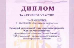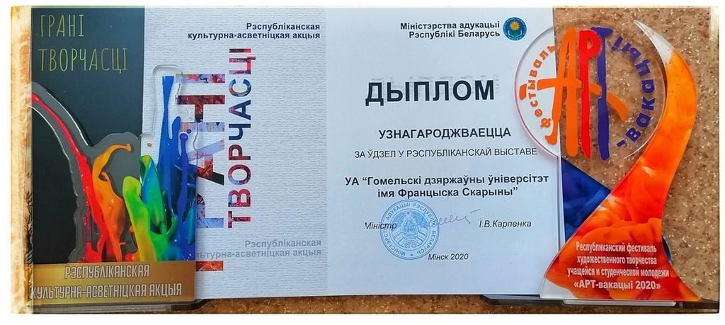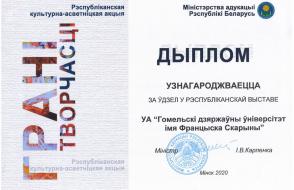За актыўны ўдзел у рэспубліканскай выставе наш універсітэт узнагароджаны дыпломам МА РБ.