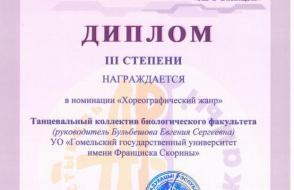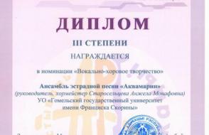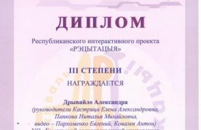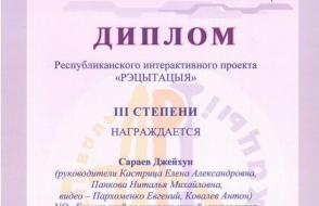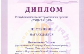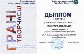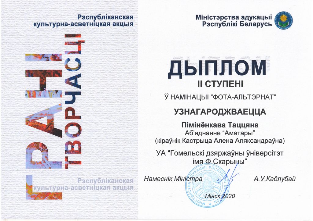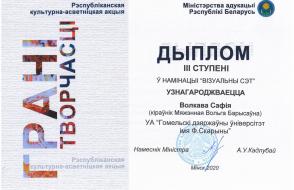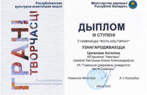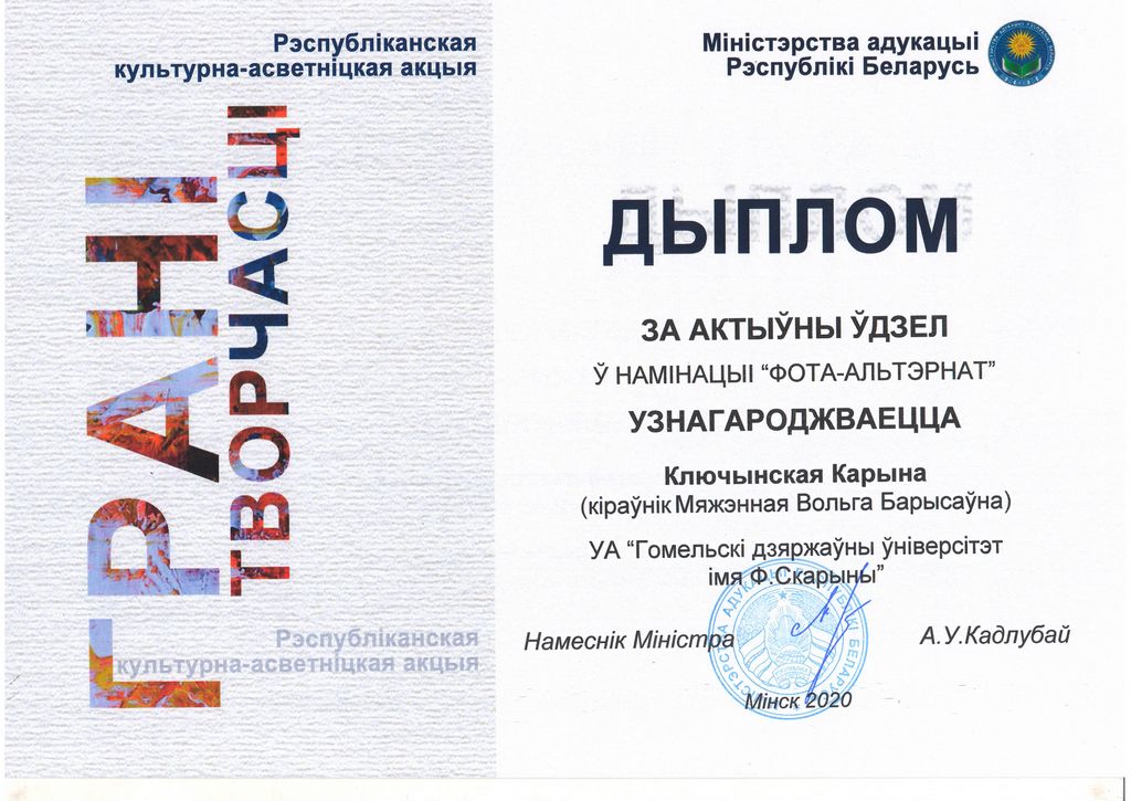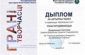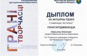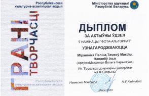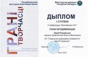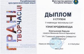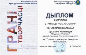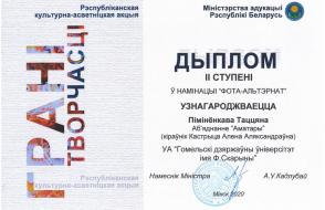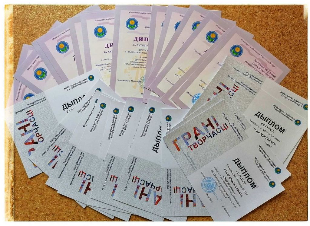 Па выніках Рэспубліканскай культурна-асветніцкай акцыі “Грані творчасці” было ўручана 16 дыпломаў Міністэрства адукацыі Рэспублікі Беларусь (тры дыпломы I ступені, 9 дыпломаў ІІ ступені, 7 – III ступені, 5 дыпломаў за актыўны ўдзел).