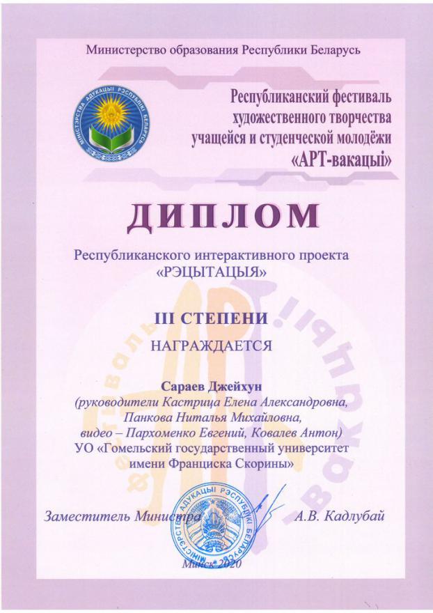 У рамках рэспубліканскага свята “Гродна – маладзёжная сталіца Рэспублікі Беларусь-2021” былі падведзены вынікі рэспубліканскага фестывалю мастацкай творчасці навучэнскай і студэнцкай моладзі “АРТ-вакацыі”, які сёлета праходзіў пад дэвізам “Магутнае слова, ты роднае слова!” (Янка Купала).