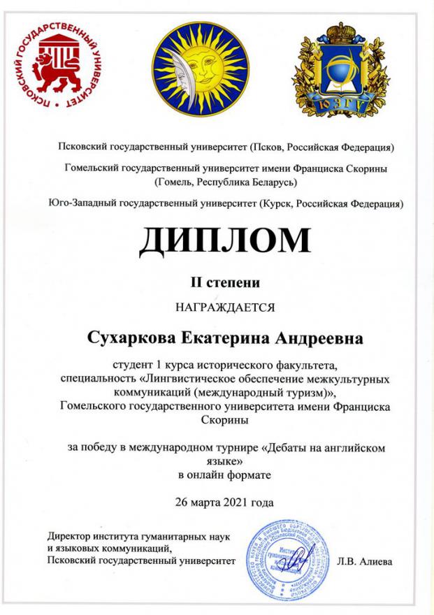 On March 26, students of the Faculty of History, specializing in "Linguistic Support of Intercultural Communications (international tourism)" of the Francisk Skorina Gomel State University took part in the online debates in English.