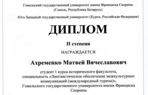 The team of F. Skorina Gomel State University was awarded the 2nd degree diploma. All participants received certificates of participation. We are very grateful to our Russian partners for the opportunity to take part in this event.