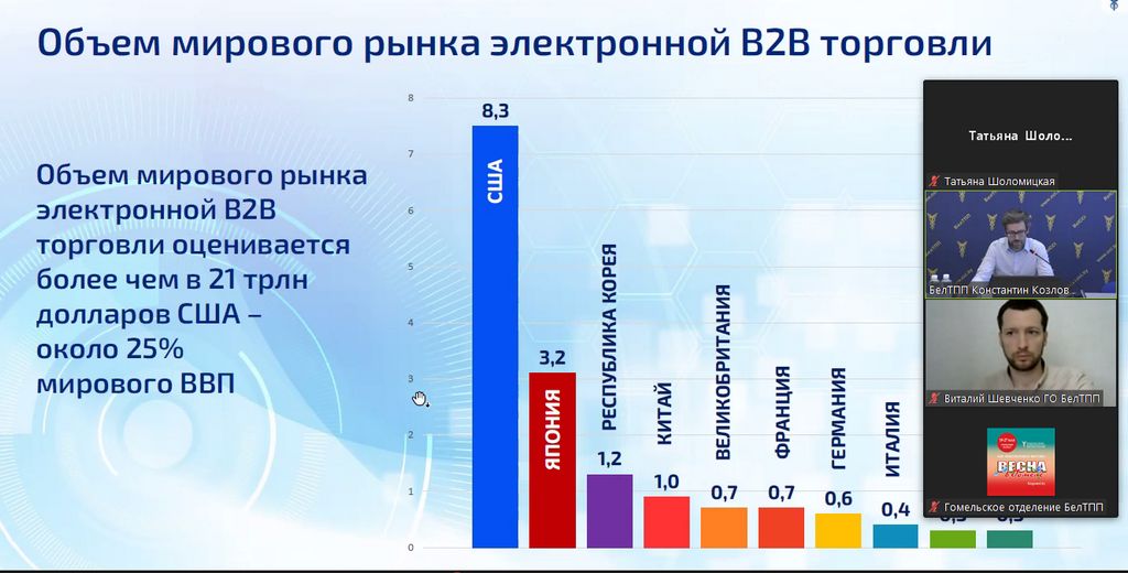 The Belarusian Chamber of Commerce and Industry organized a round table “Working on electronic platforms is an important resource for finding partners and effective solutions in modern conditions”, which was attended by representatives of the Department of Economics and Management A.A. Kazuschik and T.M. Sholomitskaya.