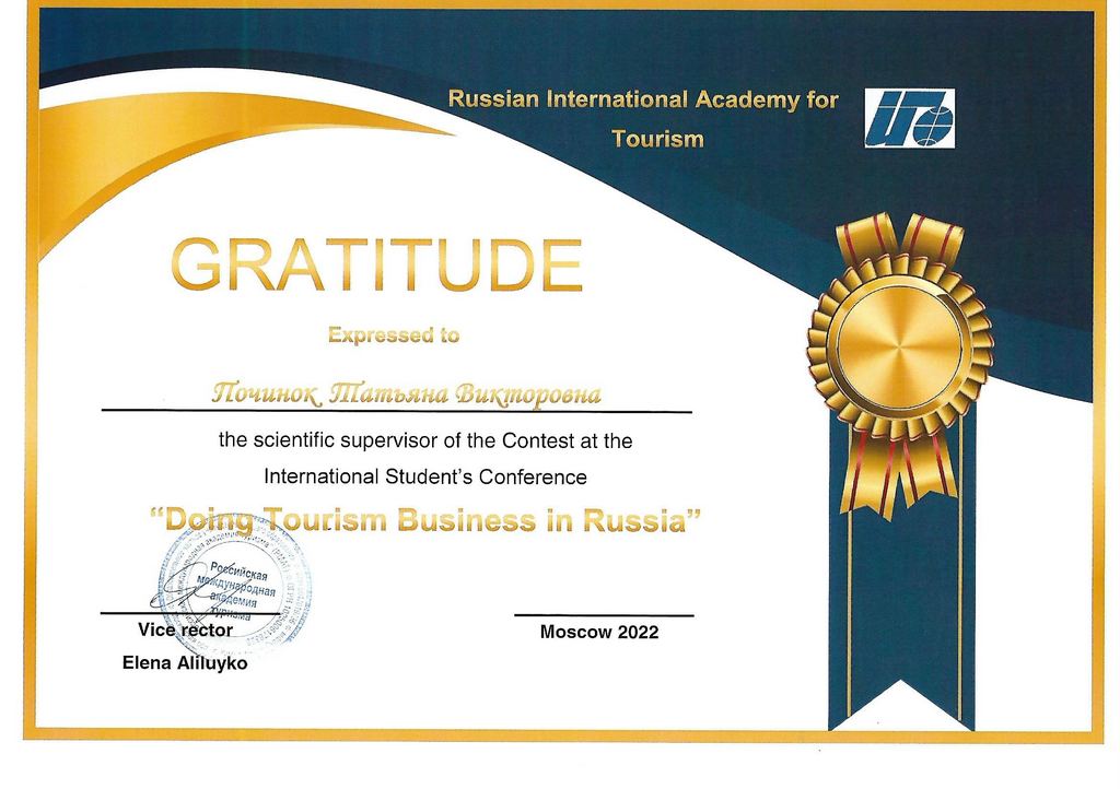 We thank the Russian International Academy for Tourism for the invitation to participate, cooperation and joint development opportunities for students!