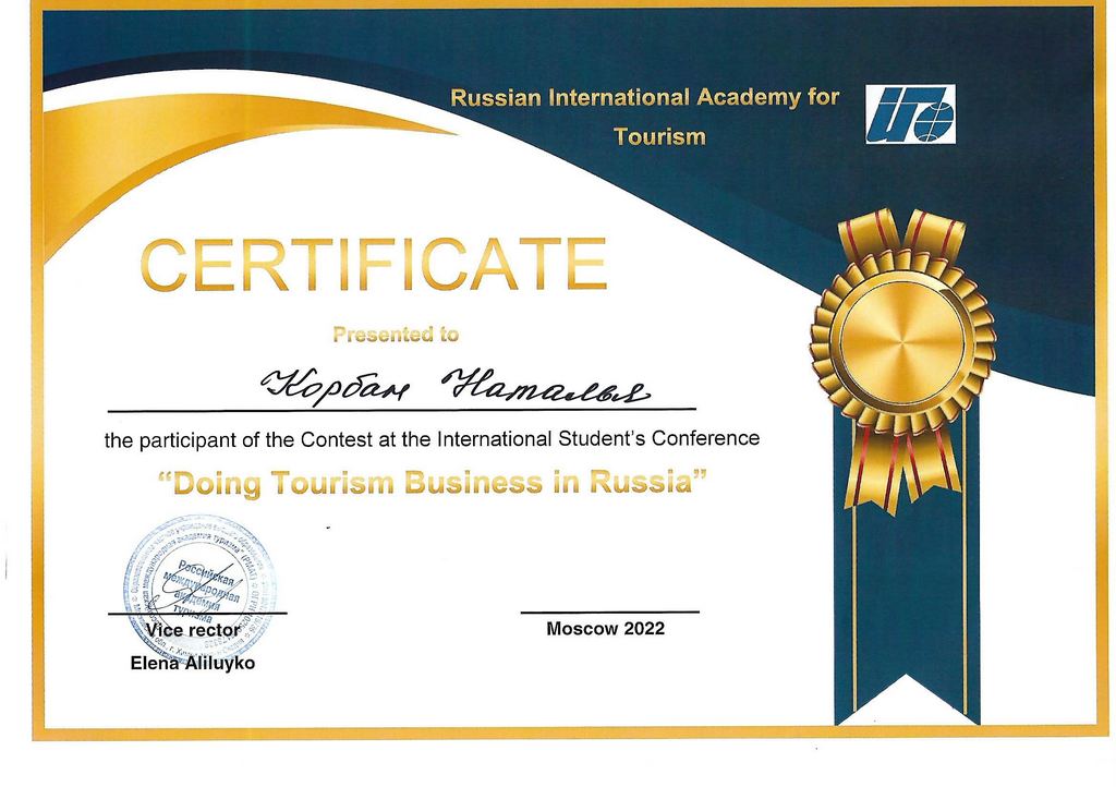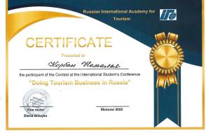 According to the conference program, 1 participant from the university had to present the results of their research in English. The purpose of the conference is to identify relevant and promising areas of scientific research and practical developments in the field of tourism management.