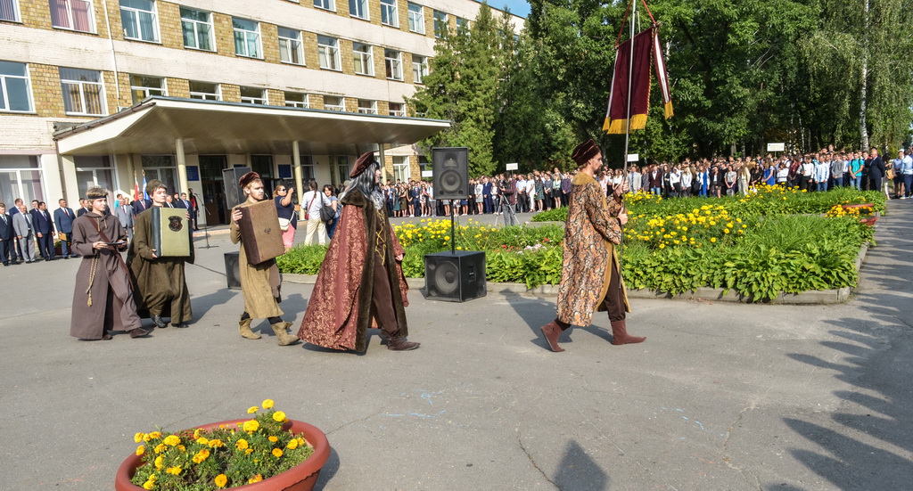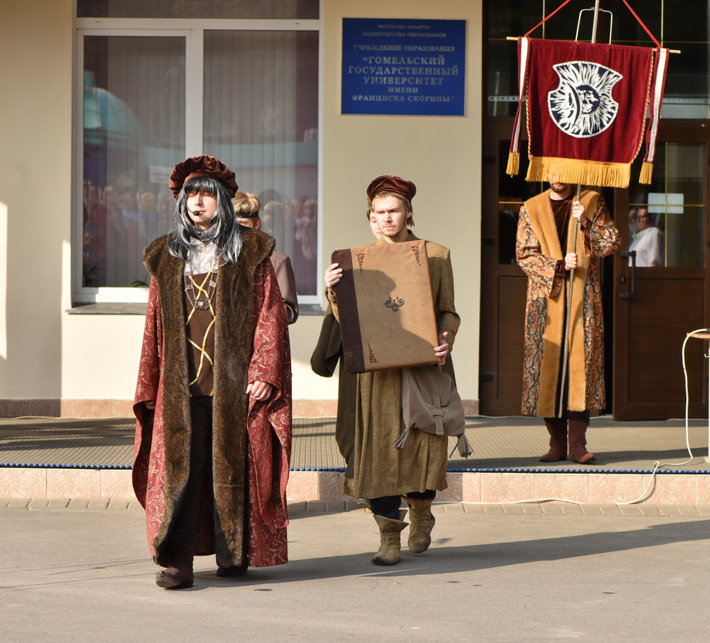 Традиционно студентам первого курса были вручены символический студенческий билет и ключ знаний, кроме того, в театрализованной постановке было передано напутствие следующим поколениям от самого Франциска Скорины.